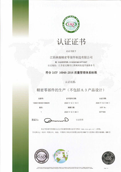 ISO9001: 2015; IATF16949:Certificates