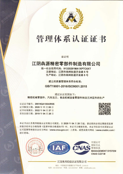 It was established in 2020. Mainly develops and produces all kinds of standard flanges and non-standard pressed flanges and collars. Products are mainly used in Automotive industry, Petrochemical industry, Printing and Dyeing machinery industry etc. The major standards are(EN)ISO/METRIC, ANSI and JIS B2220. Pressed flange for metric size range is DN40-DN300,PN10-PN16. Pressed flanges for ISO size range is DN15-DN1500,PN10-PN16. And Welded collar ISO size range is DN15-DN800. We have the latest production and inspection equipment, perfect quality management system and manufacturing process.